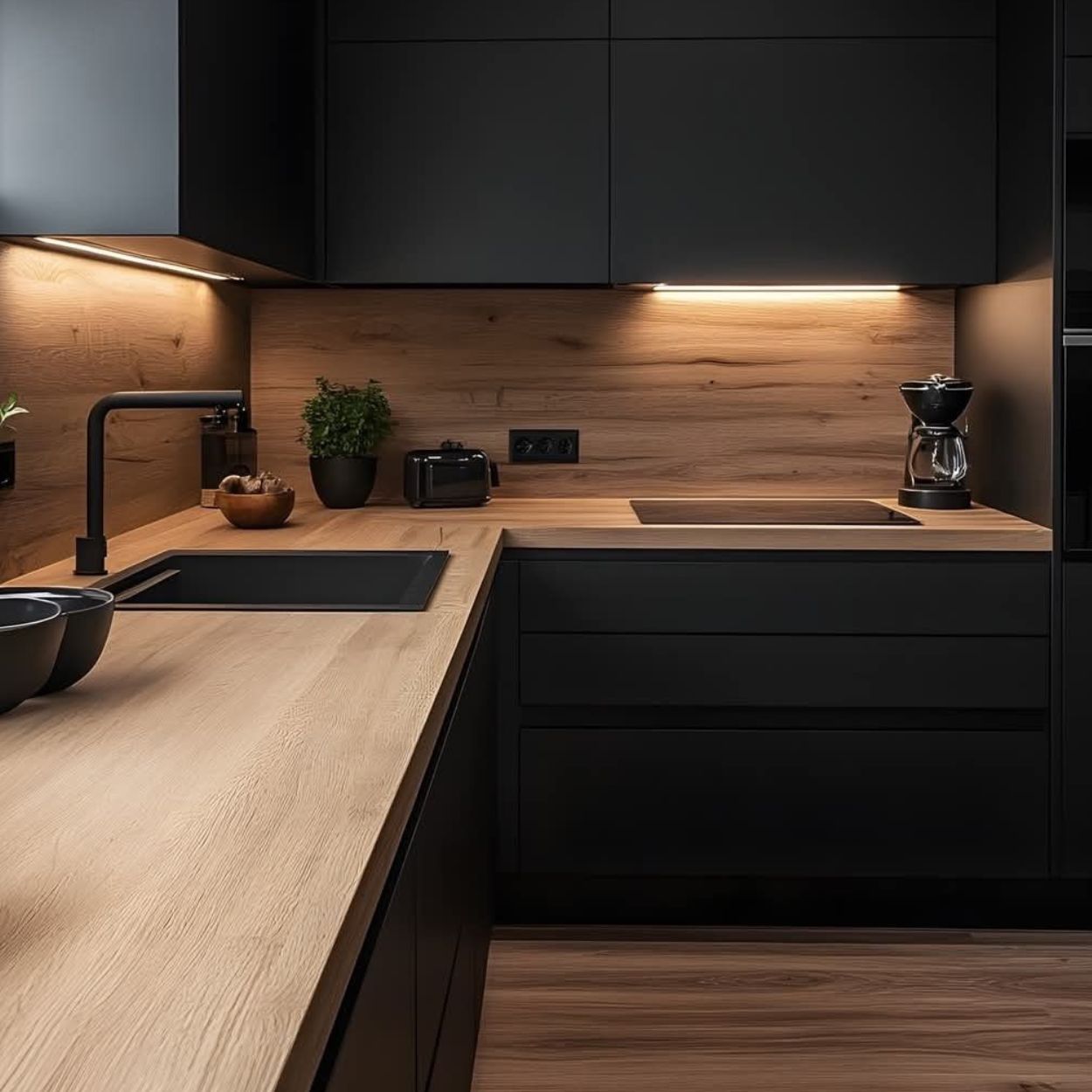 Élément central de votre cuisine, le plan de travail est choisi pour sa résistance et son style. Bois massif, stratifié ou mix de matériaux, il s’adapte à vos besoins.