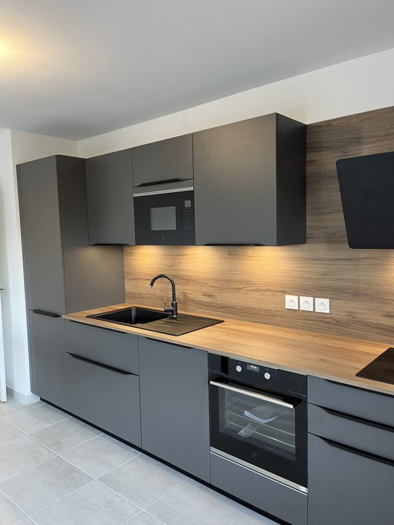 Nous intégrons parfaitement vos équipements (four, plaques, lave-vaisselle, réfrigérateur) pour une cuisine fonctionnelle et fluide au quotidien.
